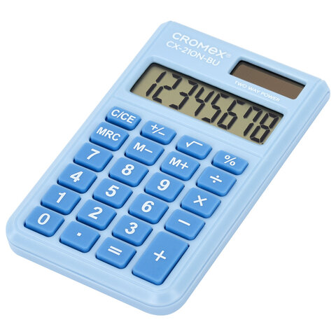 Калькулятор карманный CROMEX (КРОМЕКС) CX-210N-BU (96х62 мм), 8 разрядов, двойное питание, голубой, 273835, 6шт.#S