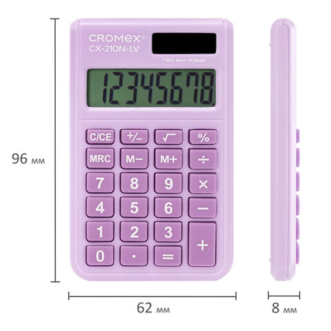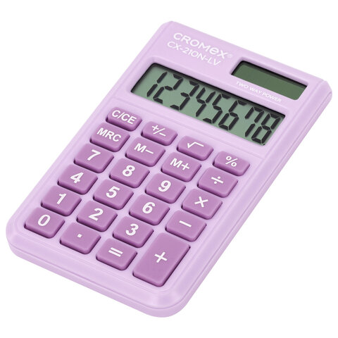 Калькулятор карманный CROMEX (КРОМЕКС) CX-210N-LV (96х62 мм), 8 разрядов, двойное питание, сиреневый, 273836, 6шт.#S
