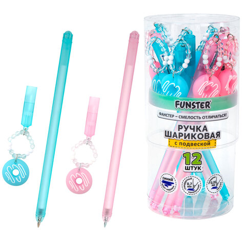Ручка с подвеской шариковая FUNSTER "DONUT", СИНЯЯ, ассорти, пишущий узел 0,7 мм, линия письма 0,35 мм, 144373, 12шт.#S