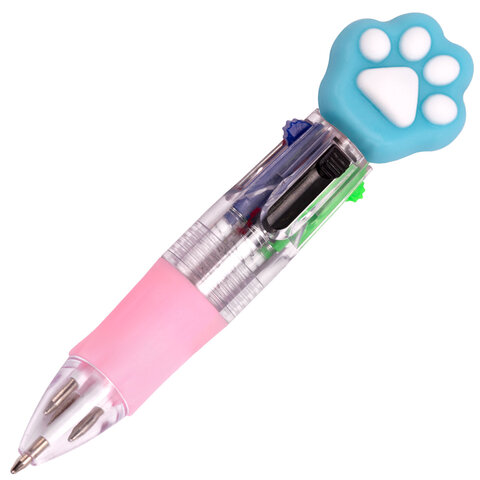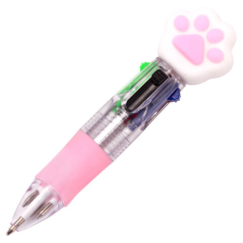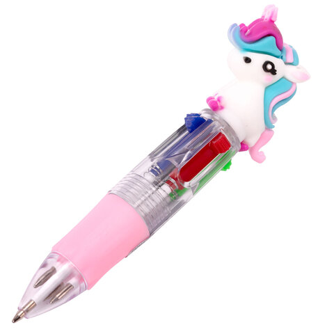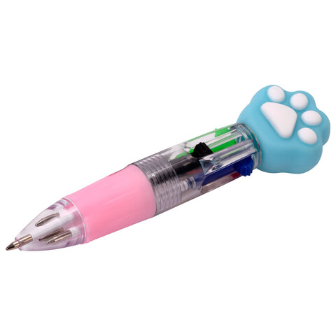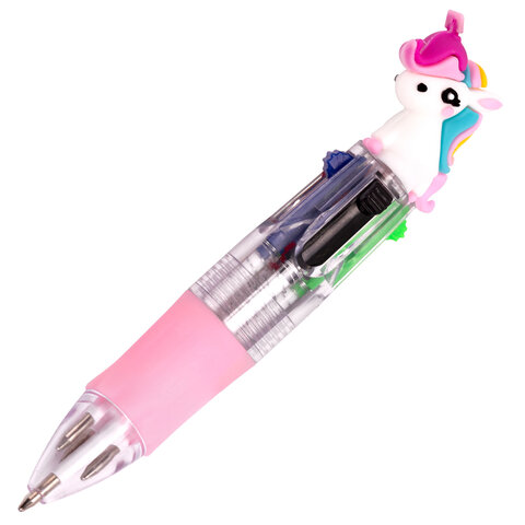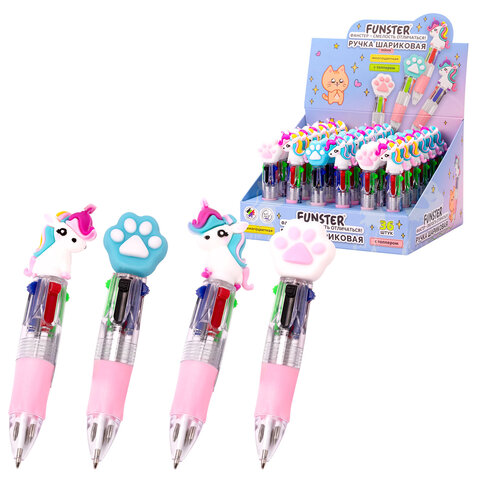 Ручка мини многоцветная с топпером шариковая автоматическая 4 ЦВЕТА FUNSTER "MIX", ассорти, пишущий узел 0,7 мм, линия письма 0,35, 144378, 36шт.#S