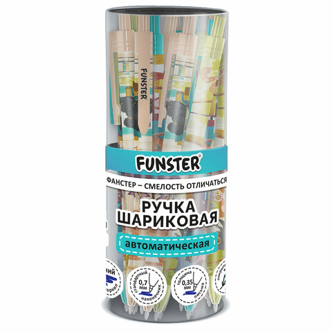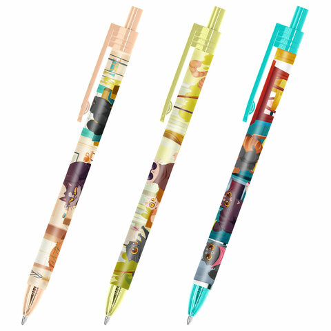 Ручка шариковая автоматическая с принтом FUNSTER "CUTE ANIMALS", корпус soft-touch, СИНЯЯ, пишущий узел 0,7 мм, линия письма 0,35 мм, 144402, 24шт.#S