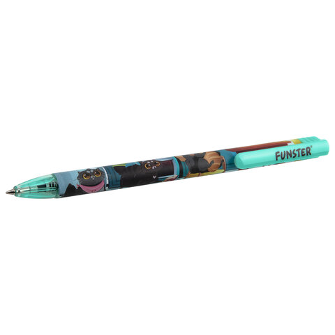 Ручка шариковая автоматическая с принтом FUNSTER (ФАНСТЕР) "CUTE ANIMALS", корпус soft-touch, СИНЯЯ, узел 0,7 мм, линия 0,35 мм, 144402, 24шт.#S