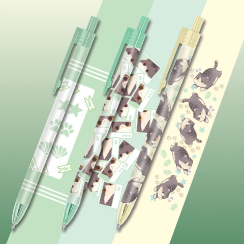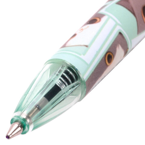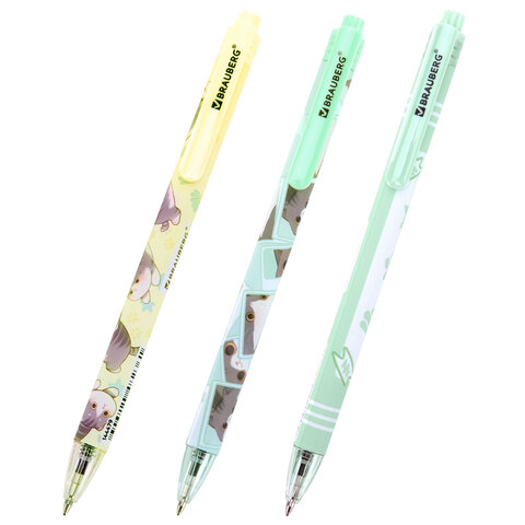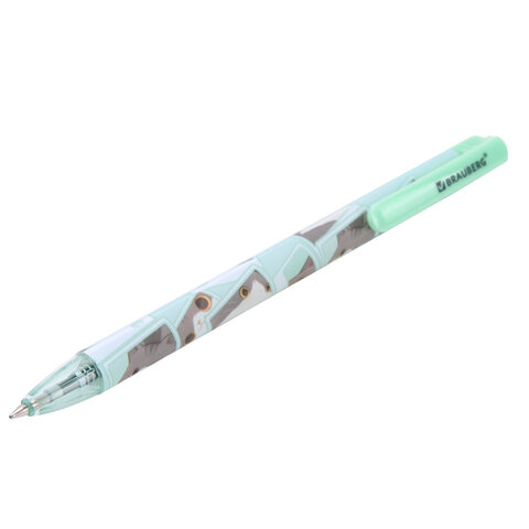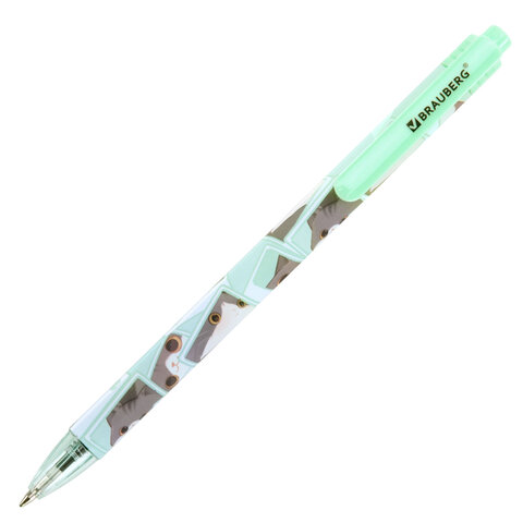 Ручка шариковая автоматическая с принтом, кросс-серия "МИЛЫЕ КОТЫ", BRAUBERG, корпус soft-touch, СИНЯЯ, узел 0,7 мм, линия 0,35 мм, 144479, 24шт.#S
