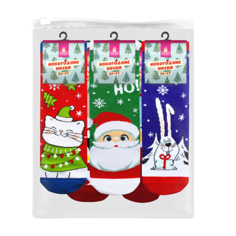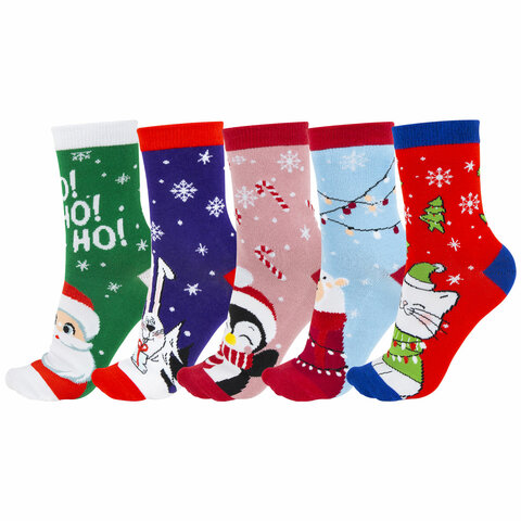 Новогодние носки НАБОР 5 пар с цветным принтом, размер 36-41, ЗОЛОТАЯ СКАЗКА, 592142, 2шт.#S