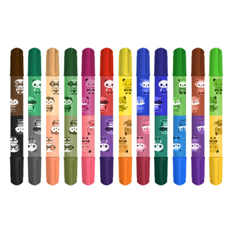 Фломастеры двусторонние толстые для малышей ультрасмываемые 12 штук / 24 цвета, BRAUBERG KIDS, 152626, 3шт.#S