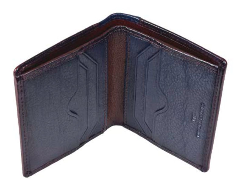 Мужское портмоне из натуральной кожи, раскладывается пополам, внутри отдел для купюр, два потайных кармана, шесть кармашков для пластиковых карт. Оснащено RFID-защитой, что позволяет защитить банковские карты от считывания. Упаковано в подарочную жестяную коробку.