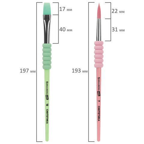 Кисти c EVA-вставкой НАБОР 4 шт. (синтетика круглые №3, 5, 7; плоская №12), блистер, BRAUBERG KIDS, 201094, 12шт.#S