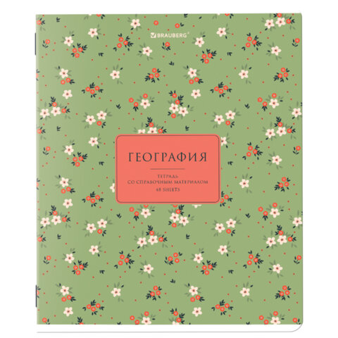 Тетрадь предметная "BLOSSOM" 48 л., рельефный картон, ГЕОГРАФИЯ, клетка, подсказки, BRAUBERG, 405594, 30шт.#S