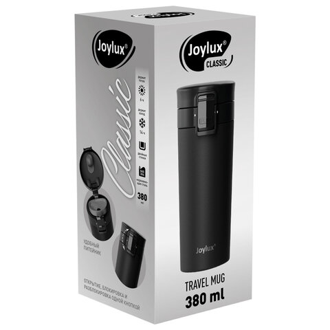 Термокружка JOYLUX из нержавеющей стали SUS304 – классическая форма в стильном дизайне! Сохраняет температуру напитков до 6 часов. Удобный питейник и многофункциональная кнопка: открытие, блокировка, разблокировка.