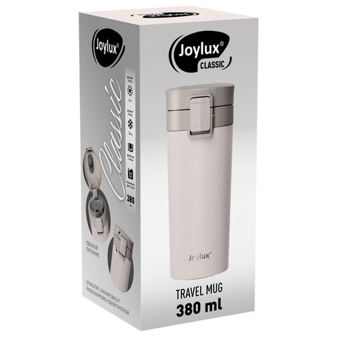 Термокружка JOYLUX из нержавеющей стали SUS304 – классическая форма в стильном дизайне! Сохраняет температуру напитков до 6 часов. Удобный питейник и многофункциональная кнопка: открытие, блокировка, разблокировка.