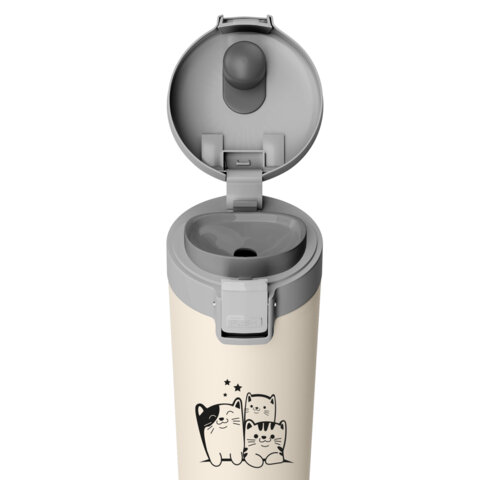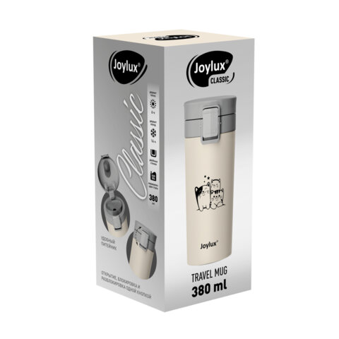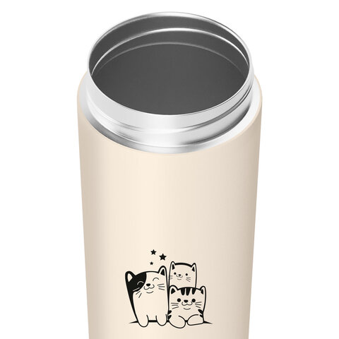 Термокружка 380 мл JOYLUX (ДЖОЙЛЮКС) CLASSIC CAT, нержавеющая сталь SUS304, бежевый с принтом, 700272, 2шт.#S