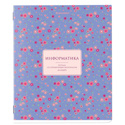 Тетрадь предметная "BLOSSOM" 48 л., рельефный картон, ИНФОРМАТИКА, клетка, подсказки, BRAUBERG, 405596, 30шт.#S