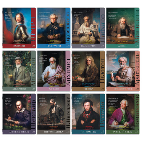 Предметные тетради BRAUBERG из серии "ВЕЛИКИЕ ЛЮДИ" со справочным материалом предназначены для учащихся средних и старших классов.