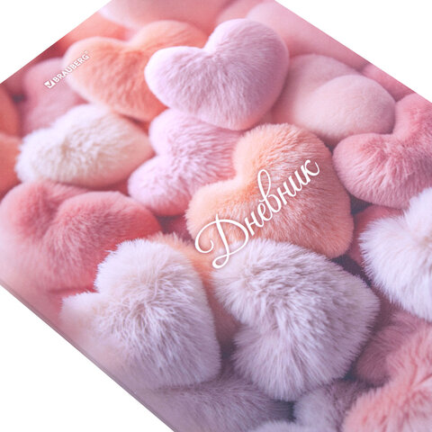 Дневник 5-11 класс 48 л., твердый, BRAUBERG, матовая ламинация, с подсказом, "Пушистые Сердечки", 107611, 12шт.#S