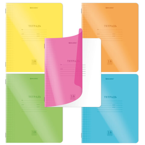 Тетрадь пластиковая обложка (НЕОН) 18 листов, клетка, BRAUBERG "Smart Cover", АССОРТИ (микс в спайке), 405032, 50шт.#S