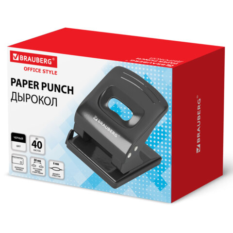 Дырокол металлический BRAUBERG "Office style", до 40 листов, черный, 273955#S